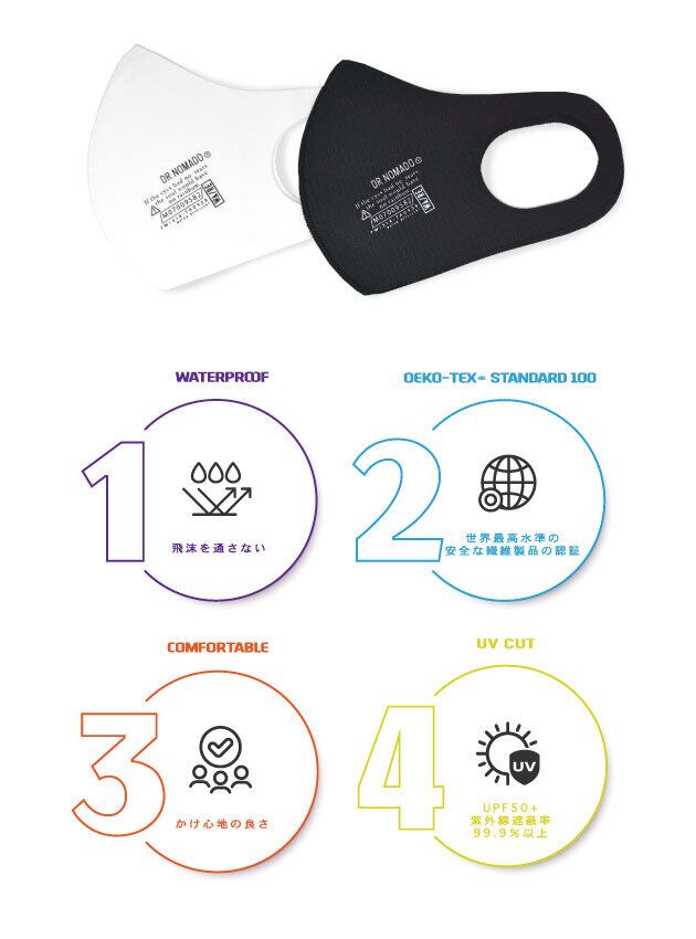 洗って繰り返し使うことができ、飛沫を飛ばすことと飛沫が飛んでくることを防ぎます。