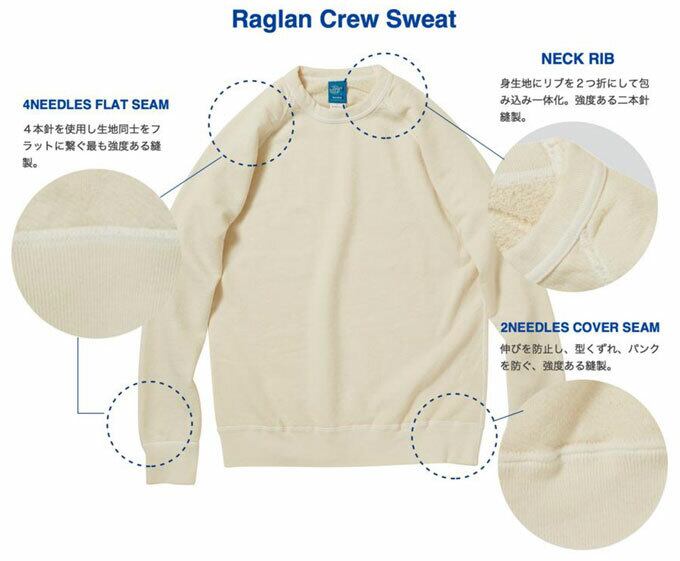 丈夫さと着心地の良さ、パターンや細部のディテールにまでこだわった、ベーシックなラグランクルーネックスウェットシャツ。洗濯を繰り返しながら長く着込むほどに色褪せし、ヴィンテージ品のような風合い感のある表情に変わっていきます。