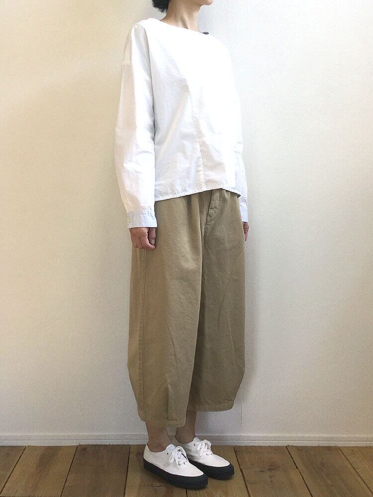 ドライタッチな滑らかなコットン100%糸を高密度に打ち込んだチノ素材を採用。ヴィンテージチノを彷彿とさせる素朴で落ちついた光沢感が特徴。上品なきれい目スタイルを演出できる点も魅力のひとつです。