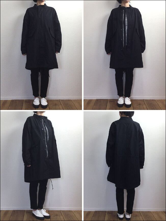 U.S.ARMYのM65フィッシュテールコートを研究し細部に至るまで再現。スタンドネック、胸テープ、大きなフラップポケット、ドローコードなどリアル感があり丁寧で強度のある縫製を施しています。
