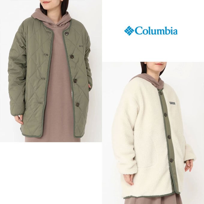 Columbia ウィメンズスウィングパークリバーシブルジャケット StoneGreen/Chalk カーキ W Swing Park Reversible Jacket コロンビア リバーシブル キルティング ボア アウトドア 防風 防寒 OMNI-SHIELD PL6739
