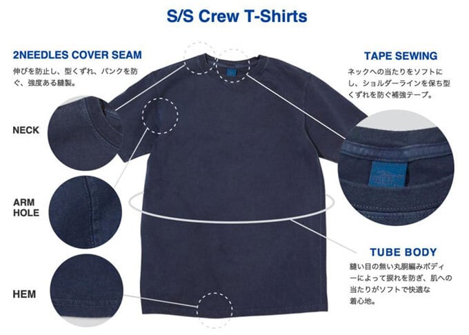 ※顔料染めを用いた製品には袖や身頃の脇などに浮き出ている白い線状のものが見られますが、生産過程において必ず生じるものとなっており製品不良等ではありません。